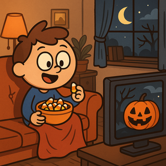 Cozy up with a Halloween movie marathon and a candy corn snack bowl.